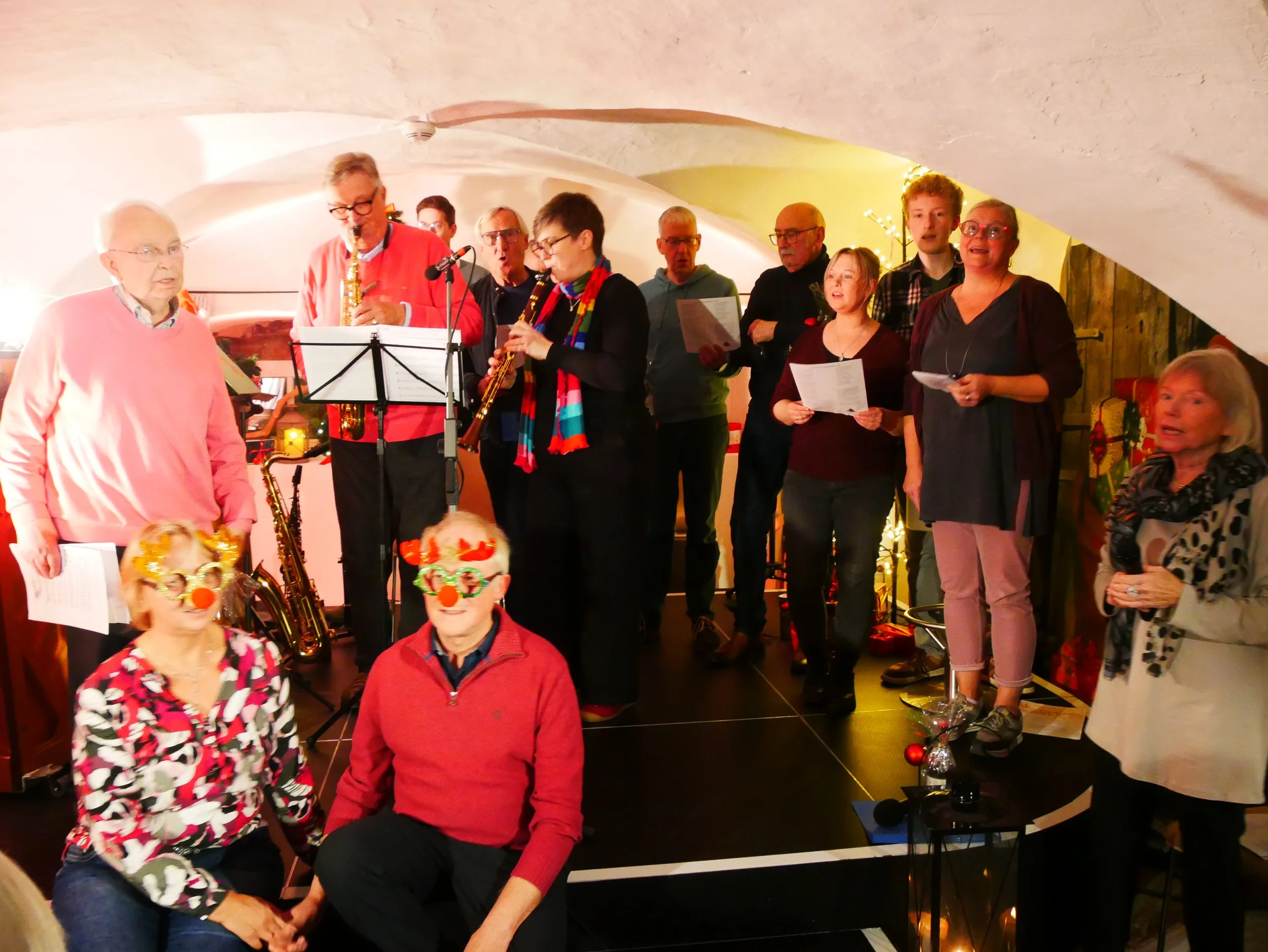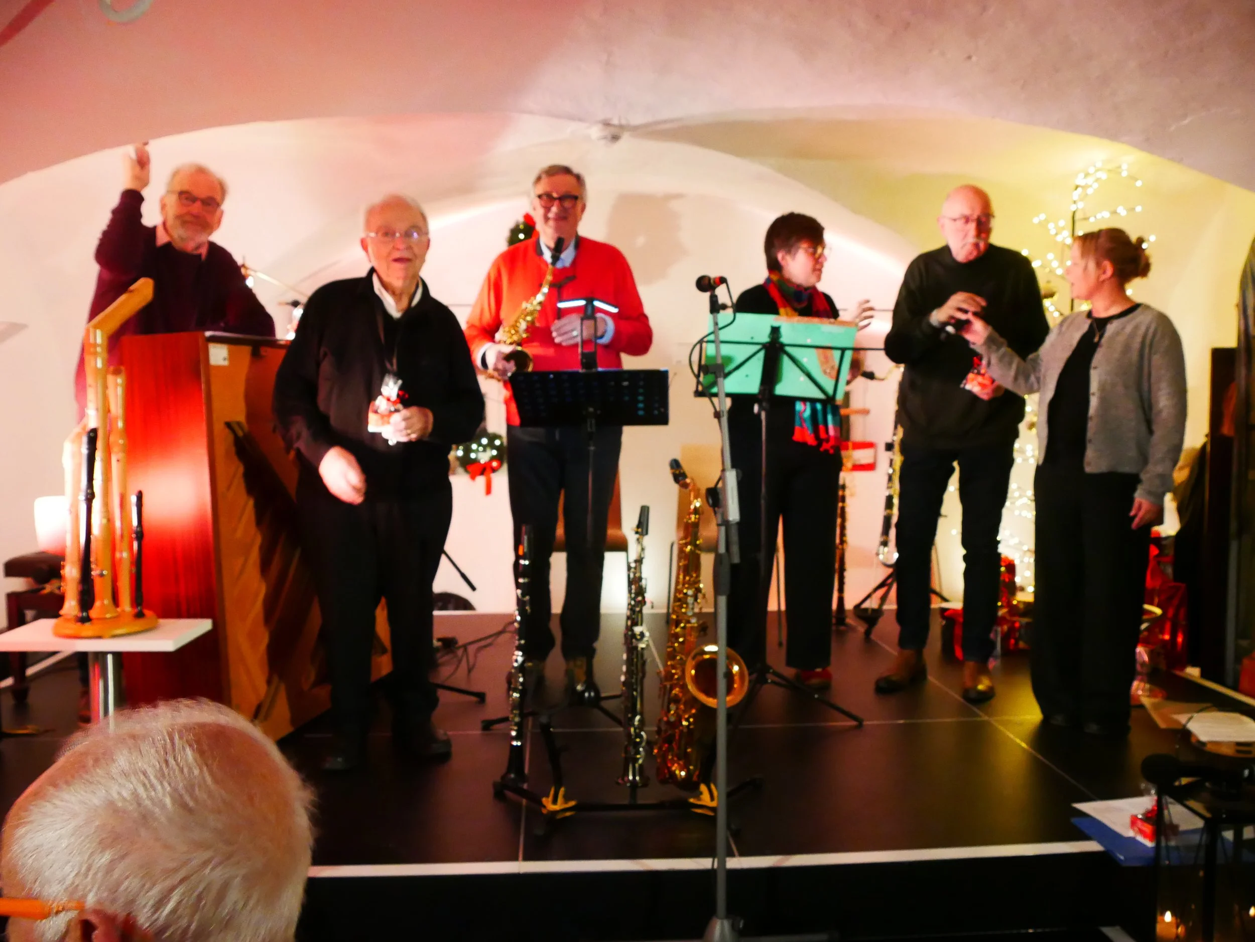 Mehr Weihnachten geht nicht! Wenn im Advent der Förderverein von Haus Letmathe zur Traditionsveranstaltung „Weihnachtliches Letmathe in Wort und Klang“ mit dem Ensemble „Jazztogether“ in den festlich geschmückten Gewölbekeller einlädt, dann freut sich das Publikum auf einen Abend um Christmas und Co. Moderator Rudi Müllenbach, nach längerer Krankheit wieder auf der Bühne, bekam einen besonders warmen Applaus. Mit dabei waren auch Hubert Schmalor (Klavier, Gesang und Akkordeon), Klaus Bergmann (Saxophon und Klarinette), Katrin Asmuth (Klarinette), Conny Müller (Gesang) und Gerd Neumann (Flöte).